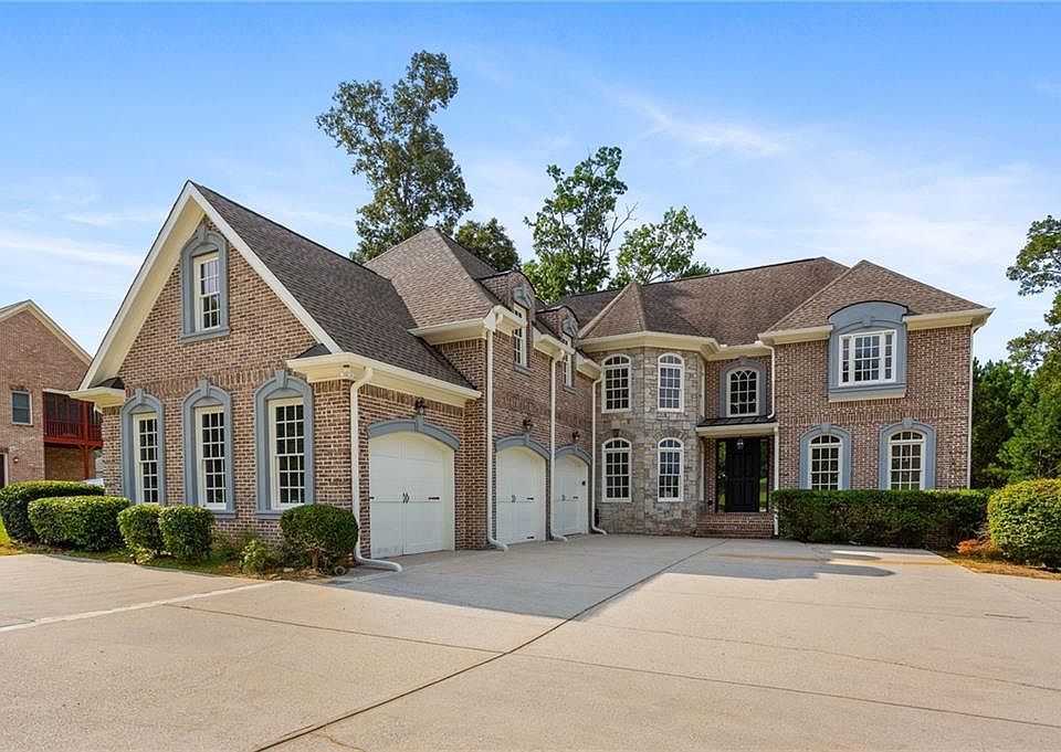 Gorgeous European-style estate home on over 1 acre corner / cul-de-sac lot! The 3-car garage and expanded circular driveway ensure there’s plenty of parking for everyone. The covered front porch provides a warm welcome into this updated home. Inside, you’ll find a space that’s bathed in natural light with soaring ceilings and luxury finishes. There are special touches throughout, including hardwood floors, recessed lighting, crown molding, and upgraded trim. To the right of the entrance foyer, you’ll find a great flex space that you could use as a home office, a formal living room, or a playroom. The formal dining room is to the left of the foyer and features floor-to-ceiling windows with ample space to host a large gathering. The spacious family room is anchored by an eye-catching double-sided gas fireplace that draws your attention up to the vaulted ceilings. French doors open on to an expansive covered deck, creating a perfect entertainment space. The fireside keeping room leads you into the gourmet chef’s kitchen, featuring a beautiful waterfall marble island and high-end stainless steel appliances. Ample cabinets and counterspace, the walk-in pantry, plus the 3 ovens make prepping meals a pleasure. The spacious bedroom suite on the main level offers a full bath and walk-in closet. Upstairs, you’ll find 3 additional bedrooms, each with their own full bath. The massive primary bedroom suite offers hardwood floors, a double tray ceiling, and an inviting sitting nook with a cozy fireplace. The ensuite bath features updated and modern fixtures, including a floating dual vanity, separate soaking tub, and stepless walk-in shower with rainshower head and convenient toiletry shelf. Two generously sized walk-in closets provide plenty of space for your wardrobe. The finished basement offers more room to spread out or entertain. It boasts durable luxury vinyl floors, a bar, a theater room, plus two bedrooms and another full bath. This great home is also conveniently located only 20 minutes to the airport and downtown Atlanta and is just a stone’s throw to local shopping and dining plus several parks and nature trails.