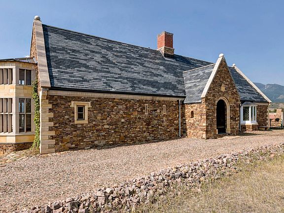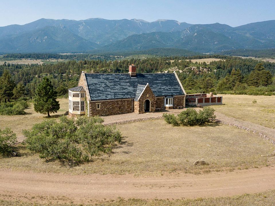 Situated on 40 scenic acres outside the tranquil mountain and farming community of Rye, Colorado, this authentic replica of a 17th century Cotswold cottage is one of the most unique properties available in the Rocky Mountain West. The home features stone construction and a slate roof, as well as hardwood floors and numerous architectural elements that exude the environment of a traditional English country home. A stately great room, with its majestic fireplace and exposed beams, seemingly transports visitors back centuries. A spacious, well-appointed kitchen, complete with a large island, offers modern conveniences while maintaining the home's unique character. French doors lead to an expansive brick terrace with unmatched mountain views. Upstairs, the master bedroom includes a reading area, and an en suite bathroom with a walk-in shower. The full basement includes a wine cellar (complete with an antique suit of armor), a spacious vault, and abundant remaining space for an office, home gym, workshop, and additional bedrooms. The home has landline phone and internet service, radiant in-floor heating, and an ultra-efficient electric thermal storage system. (The home's numerous antique furnishings (including furniture, cabinets, paintings, rugs, silver, sculptures, and more), predominantly from the 1700s, are to be included in a sale. A comprehensive list is available to qualified buyers.) Adjacent to a walled garden, a separate guest house, built from cedar and designed in the style of an 1850s American farmhouse, features a loft and an antique stove, and can comfortably sleep at least three adults. (Furnishings are included.) A small greenhouse is attached to the home. The detached one-car garage includes workshop space. And, an enclosed courtyard, just west of the main house, provides outdoor cooking, dining, and entertaining space. The remainder of the property includes approximately 30 acres of woods and 10 acres of open meadows, offering ample space for future barns, stables, and pasture. The property has a productive domestic well, allowing for household use, watering livestock, and limited irrigation. Located just over one mile from a paved county road, the property is accessed via a well-maintained private road with keypad-gate access. The San Isabel National Forest is just two miles west, and Pueblo is 30 miles northeast. It's a quick 77-mile trip (generally just over one hour) to the Colorado Springs airport.