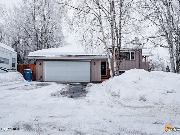 Beautifully updated home in Chugach Foothills! Custom updated kitchen features island w/raised breakfast bar, 5 burner gas range, BI pantry, SS appliances & solid surface counters. New carpet throughout & fresh paint in many areas. Lower level features spacious FR. Nice corner lot w/RV parking, fully fenced yard & covered side porch! Conveniently located close to schools, parks & shopping.