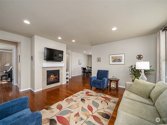 This elegant home is thoughtfully appointed w/French doors, 8’ entry door, cozy gas fireplace, ample hw/flooring, bonus room w/solid oak shelving, lots of storage shelves in the garage, complete w/a sink. The kitchen boasts full-height subway tile backsplash, gas range, pendant lighting, breakfast counter, under-cabinet lighting, granite counters, ss/appl. & crown molding. All appliances, incl. wall-mount TV convey w/the home for a move. The exterior has been lovingly landscaped & features an extended, covered patio w/canned lights, garden trellis, fenced yard w/gate & charming cottage features in front w/a window box & shutters. The exterior of the home was freshly painted in 2022. This community offers a private beach, club house & more.