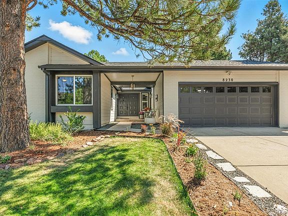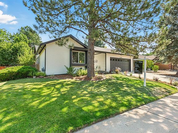 Serene suburban bliss awaits in Centennial’s sought-after Foxridge community! Perfectly positioned on quiet cul-de-sac beneath the shade of mature pines, this beautifully updated ranch home blends timeless design and comfort. Thoughtfully renovated & completely move-in ready, it showcases vaulted ceilings, skylights, and rich hardwood floors that flood the open-concept main level with light and warmth. Living area is anchored by a chic slat wall & gas fireplace framed in stone, creating an inviting space. Showpiece kitchen impresses with handmade cabinetry, large island w/ seating for four, gleaming quartz countertops, stainless steel appliances (36" wide gas range), and marble backsplash. Oversized windows brighten the adjacent dining area, perfect for holiday gatherings or casual dinners. Designer lighting, custom closets/shelving, and built-ins add elevated touches throughout. The king-sized primary suite rests in a private wing, complete with sophisticated paneling and a spa-worthy ensuite featuring dual vanities, a dedicated makeup nook, walk-in closet with organization system & glass-enclosed shower. Two addl bedrooms and stylish full bath complete main floor. Downstairs, the finished basement expands your lifestyle with a spacious family room—ideal for movie nights or game-day hosting—alongside a home gym with mirrors & workout flooring, a home office featuring paneled accent wall and double doors, 4th bedroom w/ egress, and ¾ bath. Large laundry room with sink, storage, and 2nd overflow refrigerator. Step outside through custom French doors to discover your private backyard retreat. A covered two-tiered deck overlooks grassy lawn & raised garden beds, ideal for outdoor dining, summer bbqs, or simply relaxing. Additional highlights include 2-car attached garage, newer roof, proximity to trails, shopping, dining & highly rated Littleton Public Schools. With easy access to DTC (10 mins) or downtown Denver (30 mins), this home delivers effortless modern living!