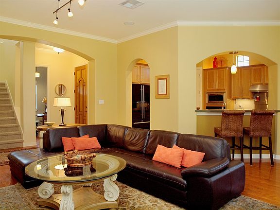 Gorgeous home in private enclave of professionals and families. Gourmet kitchen w/stainless appliances. Large family room w/oak hardwoods open to dining and kitchen. 1 bedroom down with full bath. Luxurious master suite with huge walk-in closet up. 2 additional bedrooms with Jack/Jill bath. Media room/office with large TV. Charming screened porch. Fully fenced back yard and patio/pergola perfect for entertaining. Lawn maintained by HOA. Minutes to freeways, shopping. RRISD schools.