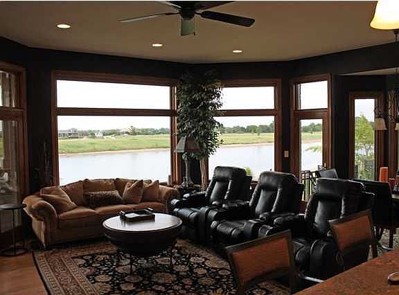 SPECTACULAR CUSTOM BUILT HOME BUILT BY STEVE SEILER ON ONE OF WICHITA'S ONLY PROFESSIONAL SKI LAKES. ALL OF THIS IS AT 53RD AND TYLER AND IS IN MAIZE SCHOOL DISTRICT!! THIS HOME HAS APPROXIMATELY 5500 SQUARE FEET OF UPDATED LIVING AND VIEWS GALORE AND SITS ON 1 FULL ACRE. EXTERIOR CONSTRUCTION IS ALL BRICK AND STONE AND FEATURES A FENCED YARD, FIREPLACE, FIRE-PIT, BUILT IN SPACE FOR A TV AND BEACH FRONTAGE!!! DON'T FORGET THE OVERSIZED 4-CAR GARAGE!! THE KITCHEN/LIVING AREAS ARE EXPANSIVE AND FEATURE GRANITE COUNTERS AND WOOD FLOORS. THE BARRELED CEILING ENTRY FEATURES ELEGANT WOODWORK AND LEADS YOU INTO THE FORMAL DINING ROOM WHICH HAS BEAMED CEILINGS. THE MASTER SUITE HAS ALL THE FEATURES YOU WOULD EXPECT INCLUDING A MASSIVE CLOSET, SEPARATE TUB AND WALK IN SHOWER. THE FULL WALKOUT BASEMENT FEATURES A LARGE WET BAR/FULL KITCHEN WITH PANTRY. FINISHED THEATER ROOM BELOW THE GARAGE FEATURES ANOTHER 550 SQUARE FEET AND HAS ALL THE ROUGH IN CABLES FOR FUTURE TV'S. FULL STONE AND BRICK FIREPLACE IN REC ROOM IS JUST ONE OF THE 4 FIREPLACES IN THIS HOME. THIS IS A VERY EFFICIENT HOME FEATURING ZONED WATER SOURCE AIR CONDITIONING AND GAS FURNACES. THIS HOME HAS ALSO BEEN ROUGHED IN FOR RADIANT FLOOR HEATING IN THE BASEMENT. .