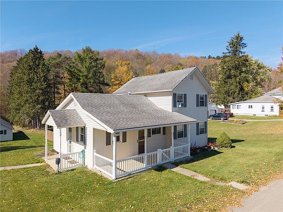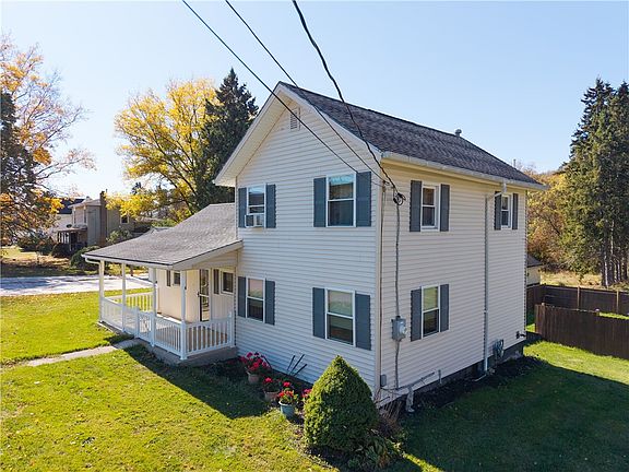 Here is a lovely 3-bdrm, 1 bathroom home with natural gas on a surveyed 1.13-acre lot. The main floor has a fully appointed kitchen with S/R/DW/Micro and a breakfast bar. There is a kitchen pass-through to the dining room for step-saving service. The main floor also features a bedroom with double closets, a large living room, and a big full bath. There are vinyl replacement windows throughout the home and a covered front porch with a durable concrete floor. Vinyl siding! The second floor has two bedrooms with window ACs that can stay. There is a finished lower level (450 sqft +/-) where the mechanics can be found behind closet doors. A Rinna Boiler fuels BB heat and a 40-gal water tank. Additional features include a 200-amp CB, a radon remediation system, a water conditioning system, a sump pump and a pellet stove. Every dog in the world would be jealous of the dog walk-out and HUGE fenced dog exercise area! It has a sturdy, secure 6-foot wooden fence and plenty of room to roam. There is a 40' x 14' machine shed with a concrete floor and electric. Beyond the machine shed are trees and grasses and trails. The detached 1-car garage is 20' x 14' with a 12 ' x 18' canopy over a concrete slab. This home and the surrounding homes have very well-kept exteriors with nice landscaping. Delayed Negotiations. Negotiations will take place October 19, Sunday @ 5 pm.