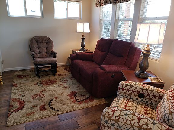 * Pride in ownership right here! Looking for a newer park model with privacy in Juniper Ridge? This home shows very well and is move in ready. Front door with oval glass details lead you into vaulted ceilings, laminate flooring, light brown wood cabinetry in the kitchen and millwork throughout. All matching newer white Whirlpool appliances in the kitchen and accented backsplash. You'll enjoy the views off the back deck that look out in private and state land. One side is open to to the peaceful park in the community. Schedule a showing for your new home today!