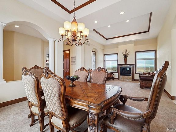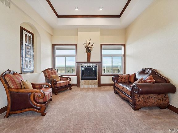 Nestled on 35 sprawling acres of Colorado's natural beauty, this extraordinary 6-bedroom estate invites you to embrace a lifestyle of unparalleled luxury and convenience. As you step inside, you'll be greeted by an open-floor plan designed to cater to both your daily life and grand entertaining. The eat-in kitchen with a palatial island is a culinary masterpiece, seamlessly connected to the family room, breakfast nook, and the first of five incredible fireplaces. The formal living and dining spaces feature a second beautiful fireplace, tons of natural light, and soaring ceilings. A highly functional office with built-ins and the primary suite complete the north wing of the home. The primary suite (home to the 3rd and 4th fireplaces) is palatial with soaring ceilings and stunning views of Front Range Colorado. The primary bathroom features a private water closet with bidet, luxurious free-standing soaking tub, separate shower built for 2, double sinks with beautiful granite countertops, remote controlled fireplace and unbelievable walk-in closet. On the south wing of the main level of the home, there are two additional bedrooms with walk-in closets and en suite bathrooms, there is additional linen storage, laundry and a mud room off the attached garage. In the basement, you'll find two additional bedrooms, one full bathroom, three areas of unfinished basement for storage, full cinema, wine bar and cellar, and pool table with an additional family room. The covered back patio from the walk-out basement gives 180-degree views of the Rocky Mountains! It opens up to reveal a gorgeous yard and a short walk to an outdoor haven with fire pit and seating for enjoying those cool Colorado evenings. There is a shooting range on the property, fully enclosed RV storage, a workshop with heat, electricity, and 2 garage bays, and a third office/guest house with a full bathroom and extended bays for large equipment.