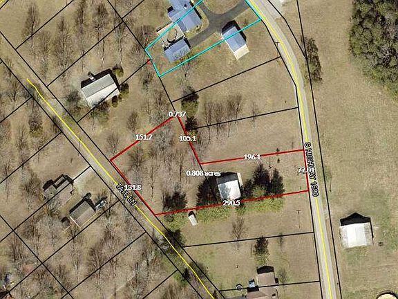 and sits on about .80 of an acres. There is extra room for parking or an additonal building.