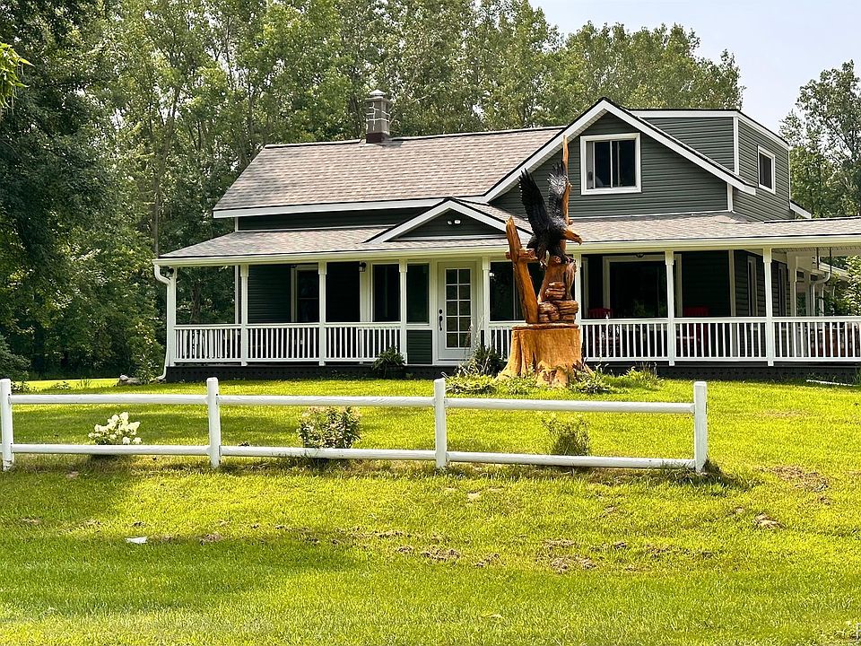 Price improvement and ready for immediate occupancy! Welcome home to this beautifully updated 1900’s farmhouse offering an open floor plan with 3 bedrooms, a loft (potential 4th bedroom), two full baths, large living room, dining room, den, heated sunroom, root cellar, partially finished basement, and an abundant kitchen boasting a wolf range, pantry with sink, and a generous island for those big family holiday get togethers. Enjoy peaceful mornings watching the sunrise from the ¾ wrap around porch that includes a swing and outdoor ceiling fans. If you need more space to store your decorations or toys the two and 1/2 car lofted garage has plenty to offer. There are almost 4 cleared acres that include a ¼ acre fully stocked pond with a fountain and two bubblers to keep those fish healthy, a fenced in garden, fruit and nut trees, berry bushes, morels, medicinal herbs, perineal flowers, and animal pens to raise your own livestock if you wish. This unbelievable piece of paradise boasts a 40x80 6400sqft heated barn including a ½ bath and expansive recreational space above. This space above has a natural gas fireplace, offers three full bathrooms, two kitchens, and other visitor accommodations. That is not all folks, there is an additional 7 acres that are wooded with trails cut in to simplify getting to your tree stand or just enjoying a peaceful walk where you can encounter deer, turkey, eagles, blue heron, hummingbirds, squirrel, rabbits, or the occasional visiting peacock just to name a few. New appliances in 2023. New siding, gutters, additional insulation, windows, doors, roof with ice-shield to the peaks, and upgraded underground service in 2022.