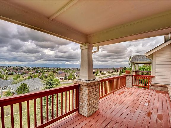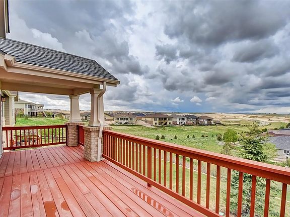 This home faces west and has a great mountain view from the extended Red Wood deck. In fact you can see from Pikes Peak to Longs Peak. This is an active Senior Adult Community (age restricted). The walkout basement allows you to have social activities downstairs as well as on the deck above. Located within 300yards from the Clubhouse which has a restaurant, indoor/outdoor pools, training area in addition to the Bocce Ball ourt, Tennis courts, Pickle ball courts and our great golf course. Living here is a wonderful life style. The area in which the home is located is one of the most sought after in the community.
