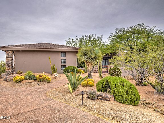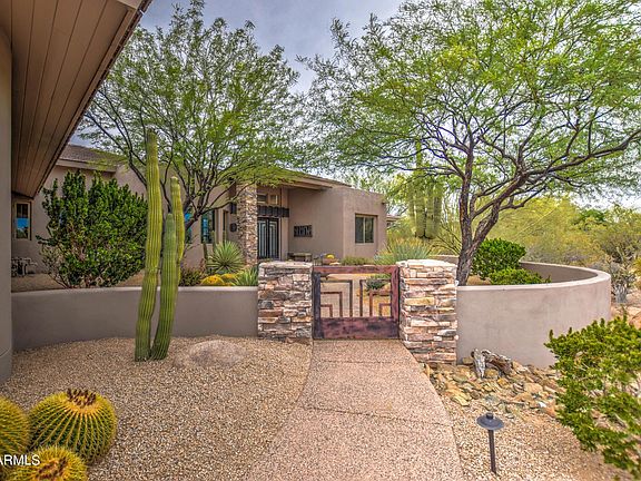 Step through the front courtyard to the custom iron doors, come inside and prepare to be blown away by panoramic mountain views. This home has been thoroughly and thoughtfully remodeled over the last year, with the utmost sense of style. The kitchen features quartz countertops, and has been connected to the family room, creating an open great room, with tall ceilings, modern fireplace, and of course, breathtaking views. A custom-built 230 bottle wine cellar was added, an amazing accent to the dining area and wet bar. The spacious master bedroom is highlighted by those same peaceful mountain views,and offers a completely re-imagined bathroom with a huge walk-in shower, plus a large walk-in closet. Completing the east wing is a