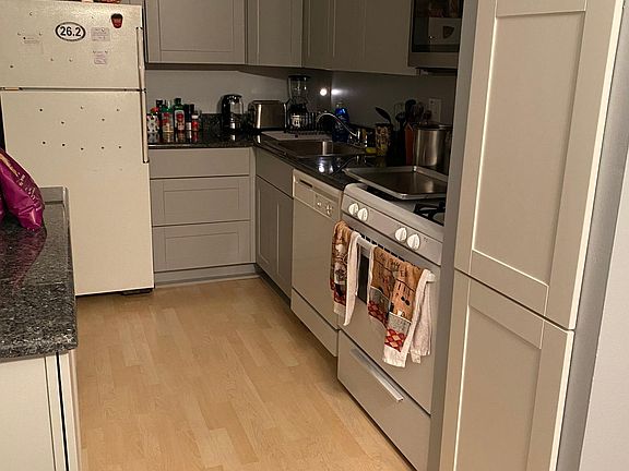 GREAT LOCATION! Minutes from expressway, walking distance to public transportation, banking, shopping, Post Office, and library. UNIT FEATURES! Recently remodeled Kitchen and bathroom. Lots of closet space with new closet doors. New kitchen cabinets with granite countertops. Bay window off bedroom and balcony off living room. BUILDING FEATURES! 2 elevators. There is a laundry room, storage room, and garbage shoot, and on each floor! Only $1,250 per month with heat, cooking gas. and 1 off street parking space included! No smokers, no pets No pets No smokers