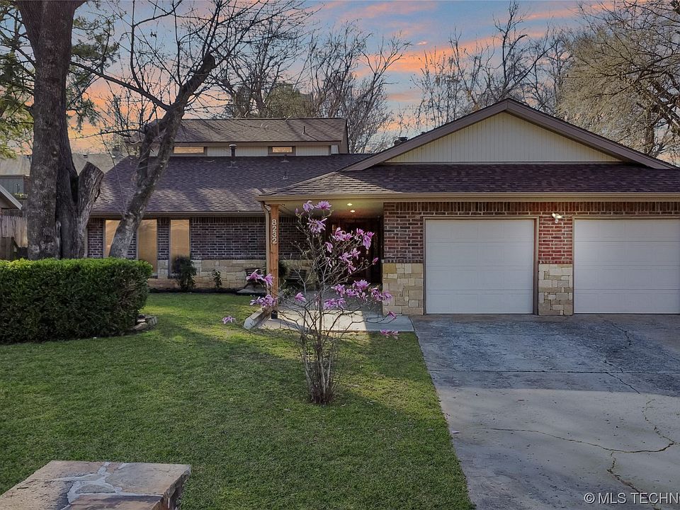 You'll love this beautiful home in Jenks Schools! New Roof 2021! New Water Heater 2024! HVAC newer unit upstairs! Escape to the Back Patio w/ vaulted ceiling, gas fireplace and stunning stone retaining wall. Gorgeous side yard. Stunning remodeled kitchen w/ granite countertops. Primary suite + guest bed & bath on main level. 2 Beds + Full Bath Up. Office/Flex Room w/ French Doors. Formal Dining. Vaulted Great Room w FP. 3rd Car Parking Pad. Fully Fenced. Desirable Neighborhood & convenient location in South Tulsa! Schedule your showing today!