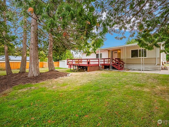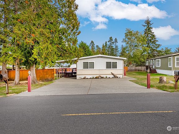 Birch Bay Village is resort living at its best. A lifestyle you can get used to 2 bedrooms, 2 bath, 1056 sq. ft. well maintained manufactured home. move in ready condition. Huge lot with many beautiful evergreens, fenced, lots of room for garden, lots of parking for boats or RVs, large front deck partially covered with storage shed. Birch Bay Village amenities include 24/7 security which is so important these days, private Salt-water marina, Golf course w/pro shop and the Golf & Grille Café, private beaches, parks, playgrounds, clubhouse, community swimming pool, Pickle ball & tennis courts, miles of private paved low-speed limit roads great for long walks, pet friendly neighborhood, use as rental, weekend retreat, or all-year-round living.