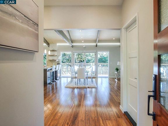 Imagine living in nature, steps from the Skyline National Trail, and with Redwood Regional Park as your extended backyard. This is a home in which you can experience both peaceful solitude and easy connectivity to the City and the entire East Bay. This contemporary 4 bed, 2.5 bath house was completely remodeled in 2014. The main floor is dominated by a large open-concept living room and kitchen, with dramatic views of the Park, Mt. Diablo, and surrounding nature. Thoughtful touches abound, including strand eucalyptus flooring, berber carpet, artistic lighting, hallway floor lights, modern bathrooms, Cat 6 and 5e wiring, A/C, heating, an electronic air filtration system, and a large unfinished basement that you can do anything with! At the end of the secluded driveway is a trail into the Park, with near-private access to its trails. Montclair Village and the 13 fwy are easily accessible, or head east via the stunning bay views on Grizzly Peak to the 24 freeway.