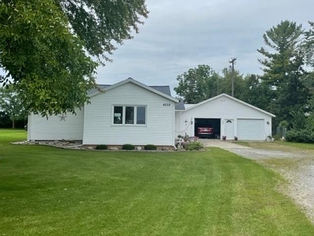 Situated on a 1-acre lot, this charming 1,228-square-foot home is the perfect blend of coziness and functionality. Offering 2 comfortable bedrooms and 1 full bath, this home features a first-floor laundry and plenty of storage throughout including a full basement. The large living room invites relaxation with its warm and inviting atmosphere. Outside, the expansive backyard provides endless possibilities for gardening, outdoor activities, or simply enjoying the tranquil setting. A two-car detached garage offers additional storage and workshop space. With the added peace of mind of a Generac generator, this home ensures you're ready for anything. Whether you're starting fresh or downsizing, this sweet home offers comfort, convenience, and the joys of simple living.