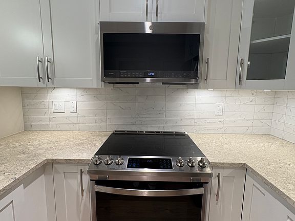 Full-size appliances: refrigerator, microwave oven, electric range, dishwasher