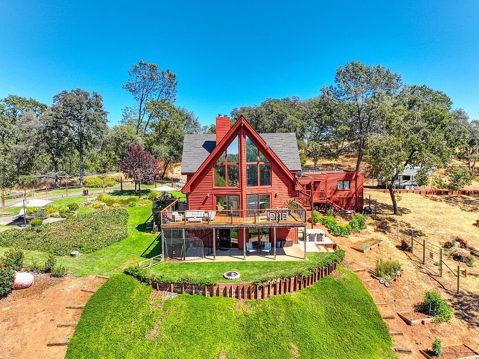 Discover your dream retreat on the Placer County Wine Trail,just a few miles to Hidden Falls Regional Park. This expansive home is located on approximately 4.7 acres and is just under 3,100 sq ft,featuring a fully paved 1/3-mile circular driveway and offers a perfect blend of comfort and versatility. Enjoy 2 large secondary bedrooms on the main level, remodeled kitchen and spacious living room with cathedral ceilings. Floor to ceiling windows allow for plenty of natural light and beautiful views. The main level also features a large deck off the living room that wraps around to more decking off of the kitchen. Perfect for al fresco dining! The luxurious primary suite with a private family room with fireplace and a spa like bathroom with a soaking tub and large walk in shower is located on the upper level. The lower level features a flexible space that can serve as a 4th bedroom, in-law suite, or potential ADU/Airbnb with its own full bath. This property also features a large 2,800 sq. ft. barn with loft storageideal for a playroom or workshop.Covered RV Parking and a back up generator.Relax in the fenced gardening areas with fruit trees, raised beds, and decorative flowers.Unwind by the outdoor fire pit and hot tub while taking in stunning views and jaw dropping sunsets.