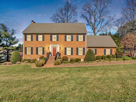 Well appointed all brick colonial on a double lot. Great features include an open concept floor plan, screened in porch, oversized great room with a gas log fireplace and large 2 car garage. Flat 1Acre lot, Heated master bath floor, whole house generator, newer HVAC systems, tons of storage and has a well for the yard, but on public water. Year-round views of Tinker Mountain and additional room in basement could be used as a 5th bedroom. There is a foundation tubing system for radon hookup if needed. Invisible fence in place but no systems, pull down attic stairs. Garden bench and small bird bath do not convey. There are Deed restrictions that include the type of fencing and no RV's or equipment in driveways.