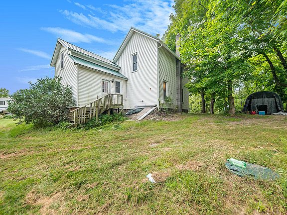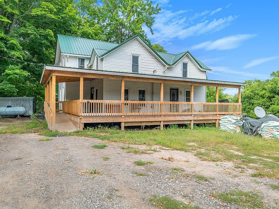 This 3 bedroom 1.5 bath with main floor laundry has had the big updates done for you. Home has a spacious kitchen, newer metal roof, newer windows, and recently added central air with new furnace. You will love the huge deck! Two stairways to the upper level give private access to bedrooms upstairs. 2 car detached garage and site work was done for a 60x80 pole barn. Pellet stove on the main floor. Comes with wood pellets to last a long time!
