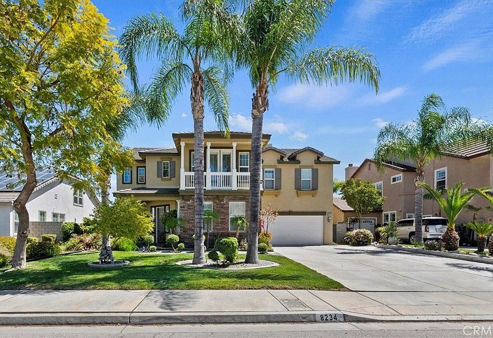 Welcome to your dream home in the Orangecrest neighborhood! Stunning and spacious 3,746 sq. ft. home featuring 4 bedrooms plus a dedicated office(can be converted to 5th bedroom) with a retreat area, and 3.5 bathrooms. Step into a bright, open layout with soaring ceilings, a two-way staircase, and window shutters throughout most of the home. The expansive primary suite boasts double doors leading to a private balcony with scenic views, a luxurious bath with a soaking tub, separate shower, and dual vanities. Each bedroom features generously sized and its own walk-in closet, and one additional bedroom includes its own private balcony and en-suite bathroom. Enjoy a large family room with a cozy fireplace, and a gourmet kitchen featuring a cooktop range, double oven, and a charming dinette area. You'll also love the convenience of a separate laundry room with a sink. Additional highlights include a longer driveway, beautifully landscaped front and back yards, and modern eco-friendly upgrades like a fully paid solar system and EV charger in the garage. Located in a highly desirable neighborhood with top-rated schools and convenient access to shopping, this home offers the perfect combination of comfort, style, and functionality.