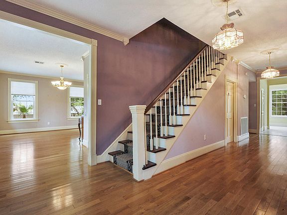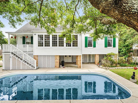 Charming Waterfront Home with a wonderful view of the Deep Water Bayou. Located on a quiet cul-de-sac street. Beautiful brick stairs leading to front porch. 4 bedrooms, 4 baths, wood floors in large foyer, living room, den, dining room. Master suite is on the main floor and additional bedrooms on the 3rd floor. Interior elevator for all 3 floors. Salt water pool, fenced backyard. Concrete bulkhead and. Spectacular view of bayou from the interior of home. Ground floor has small guest room and bath, Wetlands on opposite side of bayou - cannot be built on. very quiet and private location.No available lots remaining on this street.