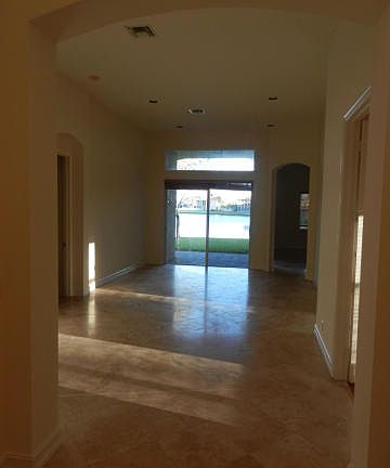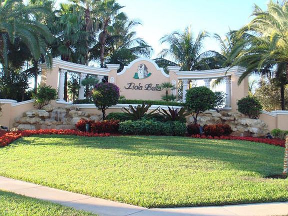 Welcome to this 3 bedrooom, 2 bath home on over sized lakefront home site in beautiful Isola Bella. Features include soaring ceilings, beautifully upgraded 20"Marble thru out the entire home . Wood Flooring in Master bedroom, and 3 rd bedroom , second bedroom has marble as well. Master-bedroom closet upgraded with Cherry wood organizers. Neutral palette is ready for buyers to put their own taste onto this already spectacular canvas.. Kitchen is abundant with 42" cherry wood cabinets, granite counters, and backsplash.. Stainless steel appliances. The family room was extended by the builder an additional four feet. Lake views from Living room, family room & master bedroom . This home is flooded with Natural light this home is open & airy. Oversized home site has large covered patio overl