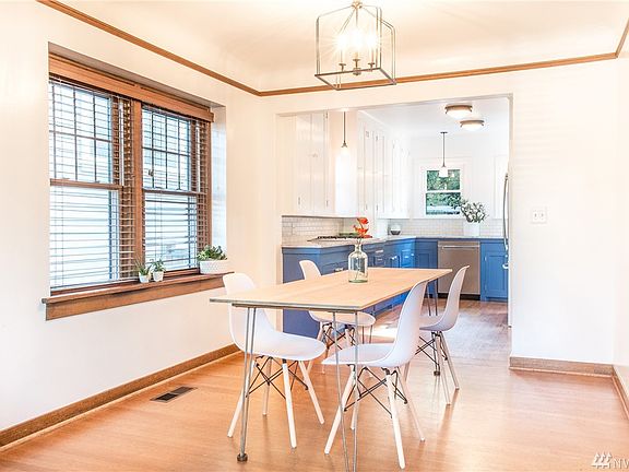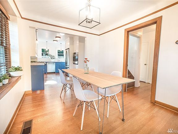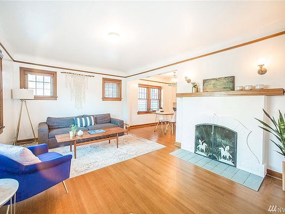 Old world charm updated for comfortable contemporary living, just 2 blocks from Green Lake. Living room w/ wood-burning fireplace, hardwood floors. Dining area leads to updated kitchen w/ subway tile, Dolomite countertops. Spacious backyard has patio for dining, BBQ, outdoor fire pit, lawn. 2 bedrooms total: two on the main floor, two upstairs plus office perfect for working from home. Basement w/ TV den, storage, and laundry. Attached 1-car garage plus 2 additional onsite parking spaces. A/C.