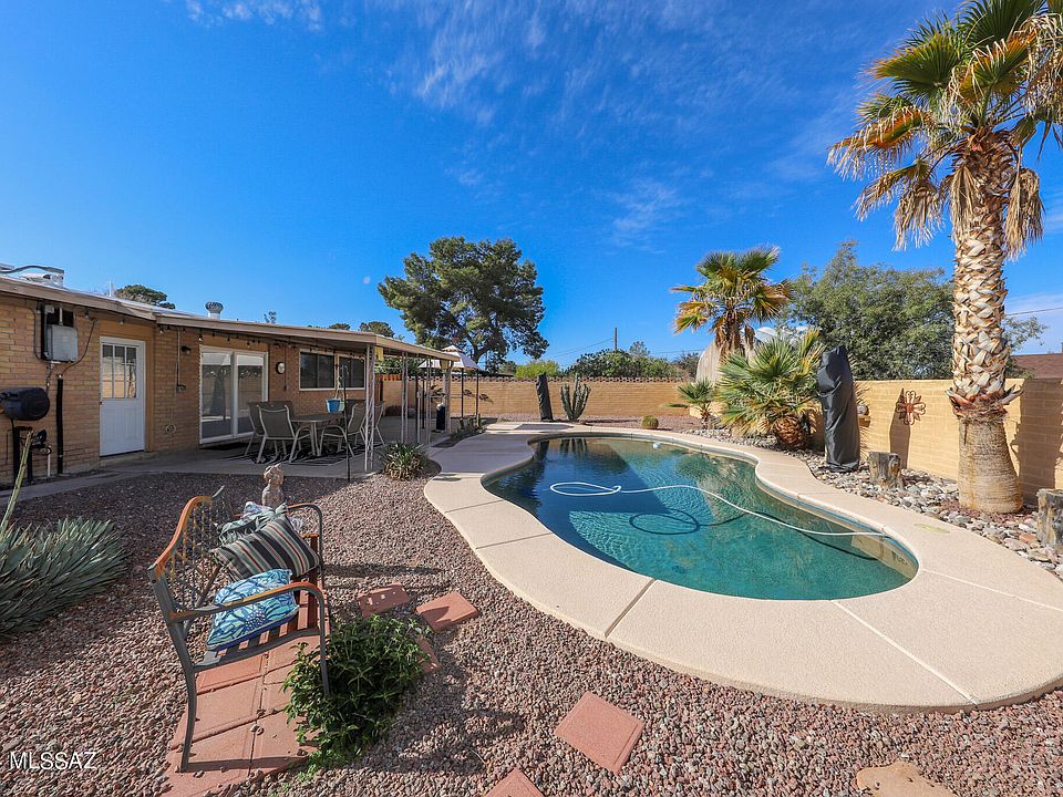 Do you love to entertain? Then you need to come and check out this house! The backyard is ready with covered patio area and pebble-tec pool! Enjoy the views of Mount Lemmon while relaxing in the private backyard. Tasteful kitchen features abundant cabinet space and breakfast bar. Great east-side location, situated on a large lot in a cul-de-sac, just around the corner from Jesse Owens park (and Dairy Queen). Close to shopping, schools, bus lines! Don't hesitate, come by and check out the house!
