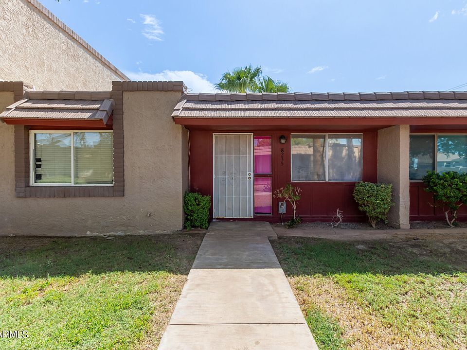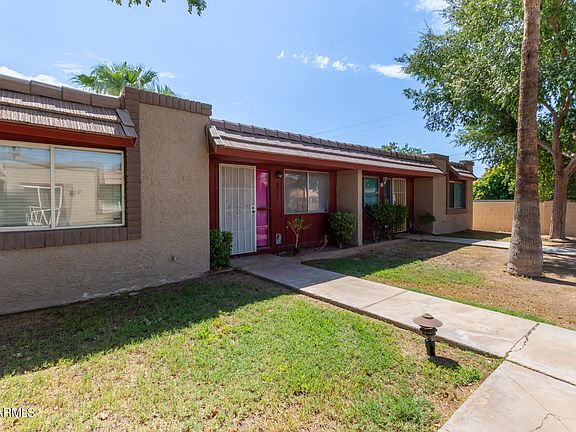 Move-in ready! Take advantage of this lovely single-level townhome now on the market! The charming interior features a perfectly sized living/dining room adorned with designer's paint, tall ceilings, and tile flooring. Cook delicious meals in the kitchen, outfitted with built-in appliances, white cabinetry, and enough counter space for meal preparation. This residence offers two cozy bedrooms and a full bathroom, providing privacy and comfort. Enjoy alfresco dining or fun BBQs under the covered patio! Don't miss the carport parking for your vehicles. Great location! Minutes away from shopping centers, restaurants, golf courses, and downtown Scottsdale. What are you waiting for? Create new memories in this adorable abode!