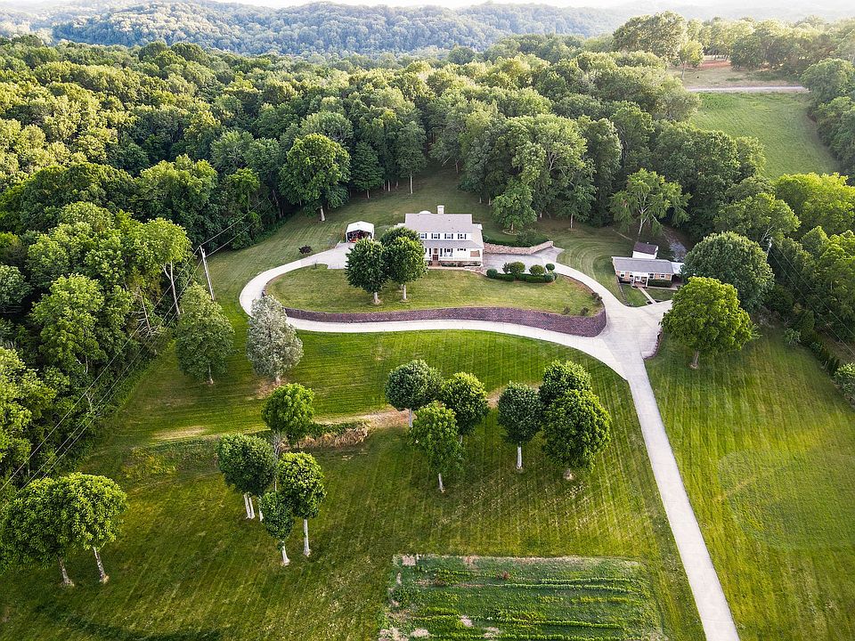 Green acres abound at this Goodlettsville estate, all while being less than 30 minutes to town. Built to withstand time, the main house features Craneboard Solid Core siding, a first floor primary suite with office/sitting area, hardwood floors, a formal dining room, enclosed covered patio, and a wrap around porch perfect for entertaining a small gathering or the entire neighborhood. The basement features an office area, hobby room, and bunker style storage that wraps the entire perimeter of the home. Outside, you will find newly planted evergreens for privacy, an all season creek, two flower fields, and a gazebo looking over the tree canopy. The separate 2 bedroom stone cottage w/ private parking and storage shed can serve as guest house, studio, or income producing rental. A true beauty!