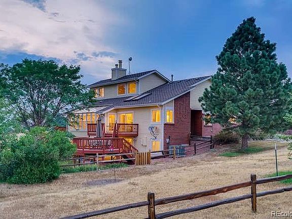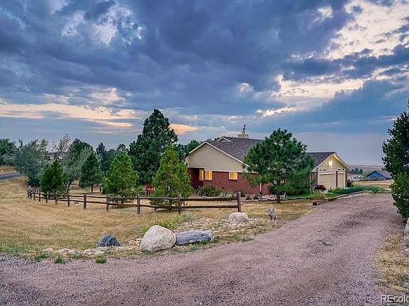 Sprawling brick ranch with loft and full finished walk-out basement on 2.4 acres in Travois. Property is zoned for horses and outbuildings are allowed. Over 4500 finished square feet with six bedrooms, four decks with mountain views and ultimate privacy, sauna, passive solar sun room, fitness room with wall-to-wall windows with great views, great room with wood burning fireplace plus a family room in the basement with a wood stove and wet bar/mini kitchen, oversized three-car garage, new exterior paint, newer Coretec flooring and newer carpet, silestone and Avonite counters. This is true "Close-in Country Living" yet minutes to shopping, dining and all the amenities you could need. Numerous flex spaces to use as you see fit-dance room, craft room, study-you name it! Award winning Cherry Creek Schools!
