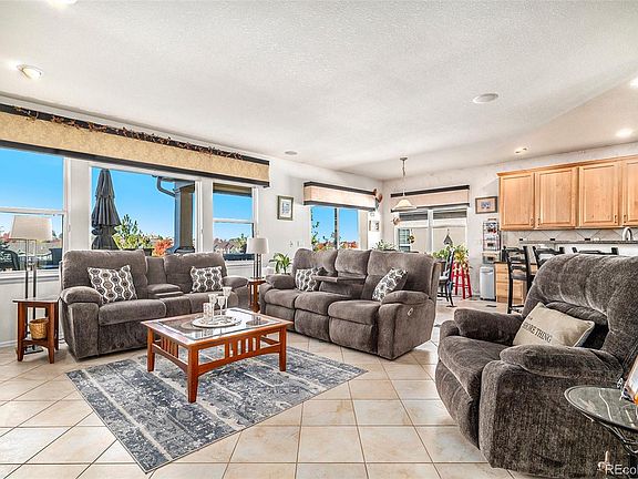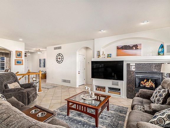 Outstanding single-family ranch filled with open-space and majestic mountain views in the fantastic 45+ community of Heritage Eagle Bend! The home is primed for entertaining with a desirable open floorplan and an inviting flow. Share a meal on the eat-in island, or host a holiday dinner to remember in the open dining room. Enjoy evenings in front of the cozy fireplace, or embrace indoor-outdoor living as the living room connects to the home's impressive oversized deck. The main-level primary bedroom features sweeping views of open space and golf greens, features include elegant tray ceilings, en suite primary bath and walk-in closet. A convenient main-floor laundry is sure to make chores a breeze! The sprawling basement bonus room creates the perfect space for game nights and entertaining. Guests are sure to feel right at home with a convenient basement bedroom and full bath. Start your mornings on the deck soaking in unobstructed views of the golf course, coffee in hand. The oversized finished two-car garage is a hobbyist's paradise, featuring epoxy flooring, ample lighting, a workspace with storage, and room to park your golf cart when not in use!