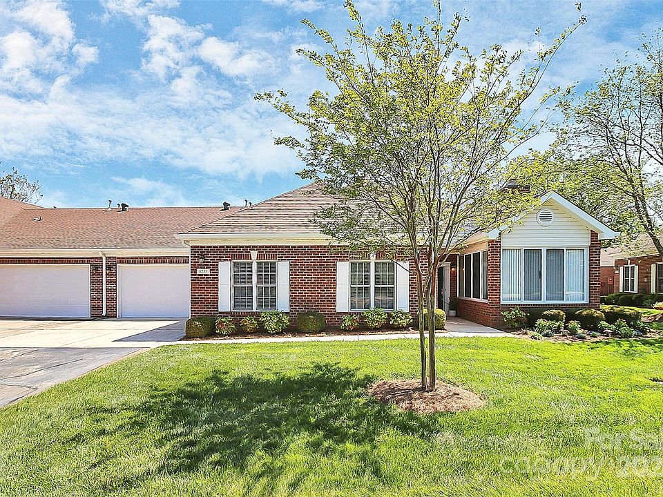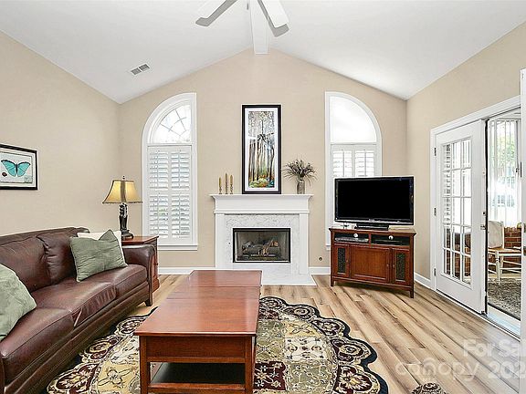 New luxury vinyl plank floors flow throughout the main living areas, kitchen and primary bedroom suite, including closets and laundry area. The beautiful light-filled living room features a gas log fireplace, vaulted ceiling and plantation shutters. The kitchen is outfitted with granite countertops, single bowl sink, tile backsplash and stainless appliances, including the refrigerator. Relaxing ensuite bedroom has tray ceiling, bathroom with dual bowl vanity, walk-in shower and large walk-in closet. Enjoy a good book or sip your morning coffee while lounging in the sunroom. Check out the flex room which could be a study, den, office, hobby room or 3rd bedroom, whatever space you need. Oversized 2 car garage even has a wash sink. Experience this perfect Ballantyne area location between Blakeney & Stonecrest. Minutes to shopping, work, appointments, restaurants, entertainment and more.