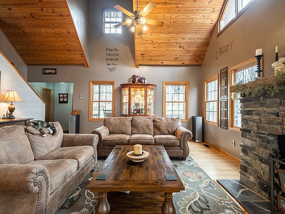 Secluded wooded retreat located on 2.07 acres (4 lots) in the Cordry-Sweetwater area with water access. Exterior features include a covered front porch overlooking the bridge walkway over the coy pond (new 2022), a 24x30 detached garage new in 2016, multi-level decks on the rear, driveway updated in 2020. Inside the main level offers a great room with dramatic vaulted wood ceilings & a stone (gas log) fireplace, open to dining & kitchen with breakfast bar & stainless appliances to remain. Lower level family room with bar with wood live edge top, bonus room, utility room & 1/2 bath. Upstairs loft over looks great room, primary suite with vaulted wood ceiling, full bath & walk in closet & private deck. HVAC & hot water heater new 2021.