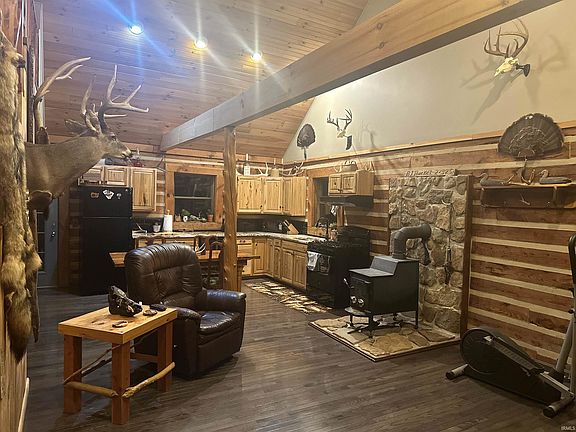 WELCOME HOME to your METICULOUSLY kept THREE bedroom, ONE bathroom with SPECTACULAR views on Patoka Lake! You will love the curb appeal and breathtaking views as you pull up to your cozy cabin on TWO acres with stunning lake views bordering government land (Patoka Lake Reservoir property with 26,000 acres), and within walking distance of Hoosier National Forest government land. Stroll up to be greeted by a covered front porch perfect for relaxing on before stepping inside to your open concept living room and kitchen area with high ceilings and stunning woodwork from floor to ceiling. Kitchen has custom cabinets with granite countertops as well as magnificent views out of the windows. In addition on this level, you will find, two bedrooms, full bathroom, laundry area, and doorway leading to your two story back deck with fabulous lake views. Upstairs you will find a loft featuring your large master bedroom. Your yard offers a nice detached building to store the lawn equipment and outdoor hobbies as well as property across from the home that has the perfect gardening spot. You are surrounded by endless outdoor space with Patoka Lake offering an 8,800 acre lake, 10 boat ramps, 2 marinas, hunting, and fishing. The cabin is close to multiple boat ramps and public land access that offers hunting for wild turkey, waterfowl, dove, small game, and giant public land white-tail deer. Home has had floor to ceiling updates and comes complete with kitchen appliances, washer, and dryer. Utility averages are: Orange County REMC ($55/winter, $75/summer), Patoka Water ($25/month), and Orange County Fiber Internet. Do not let this one pass you by.... whether you are looking for your next vacation rental or your own private slice of heaven this cabin is it!