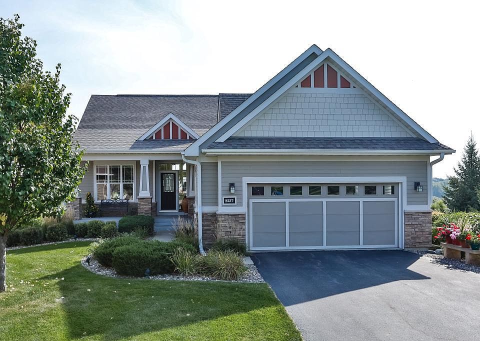 Former Villa Townhome model with one of a kind views of the MN River Valley 2nd to none. One level with walk out finished LL. Extra upgrades. Brazilian Rosewood floors, surround sounds both levels, vaults, beautiful birch cabinets, Jeldwen windows, security system, Central Vac, two -6 point remotes for FP - HUGE GARAGE 29X24, Sec Sys, Barn door to Laundry, In-floor heat in porch, 8ft doors, 10ft ceilings, 104 gallon insulated water heater. Hunter Douglas blinds. Unbelievable property that sits on a private cul de sac- this home will not disappoint!