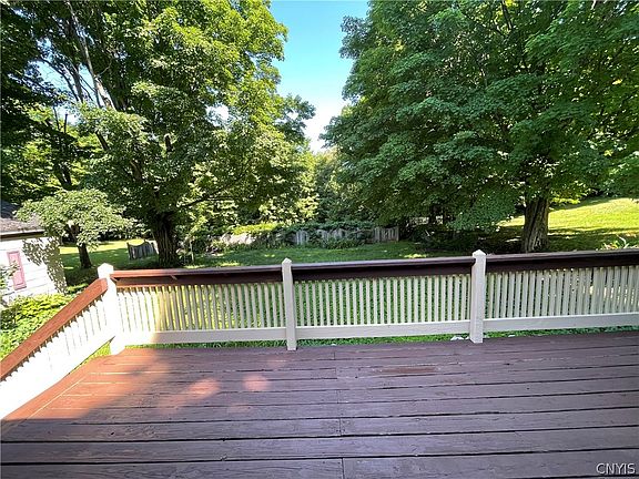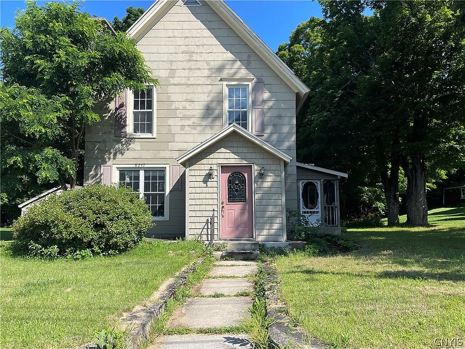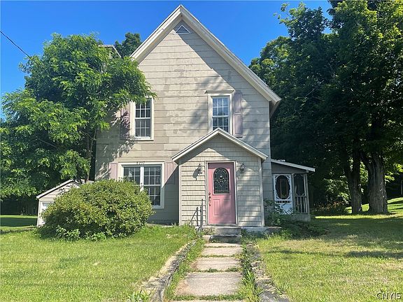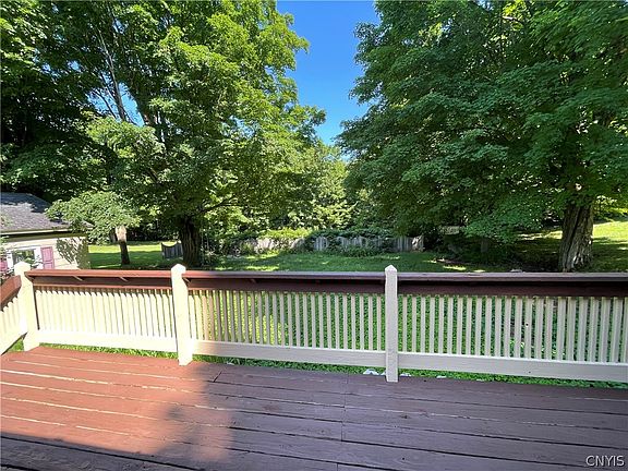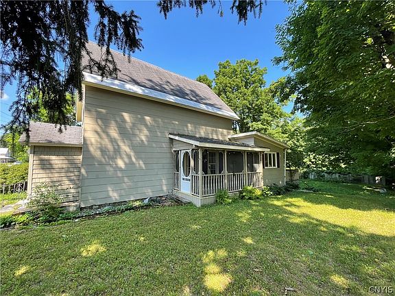 PRIME location 30 minutes to FORT DRUM, 3 bedroom, huge backyard, 2 STALL DETACHED GARAGE, Village Park with lots to do is on the other side of the backyard fence. You will be delighted to see what this home has to offer, new vinyl flooring kitchen and new wall to wall carpet on first floor HUGE Knotty Pine kitchen with woodstove to keep you cozy, newer full bath on main floor, formal dining room, screened porch and Stone Mantle Fireplace with built in book shelves which spans the width of the living room. Upstairs 3 nice sized bedrooms with a half bath. Call today to view this charmning Village home.