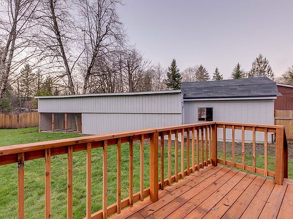 This beautiful home sits on a huge lot just shy of a half acre, with fruit trees, a fully fenced back yard & creek frontage. The covered front & back decks allow you to enjoy the wildlife & forest all around you. Large outbuilding that offers lots of space for a variety of possible uses. Room for the whole family with 3 beds, 2 full baths & a den/office space. Spacious kitchen with lots of storage, built-in oven & a cook top. The home is in excellent condition with a brand new furnace.