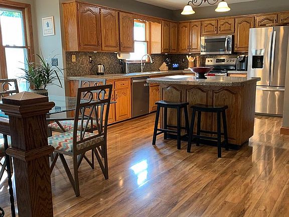 Move right into this spacious inviting updated home complete with large eat in kitchen featuring granite counter tops, designer back splash and br bar open to GR w/ frpl. Formal DR/Office. Frieze carpeting, updated hardware and lighting, ceiling fans, custom blinds, newer roof (50 yr,), newly painted exterior, newer AC/Heating (w/warranty), home newly painted 2022, windows, storm doors, Raynor garage doors, tons of storage, and more.... Large tiered deck overlooking treed backyard, concrete patio below deck, beautiful front porch, newer 10x16 shed w/power. Fabulous location on tree lined street within walking distance to school/pool and easy hwy access via 435. Don't miss this deal as it will go FAST!
