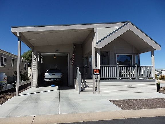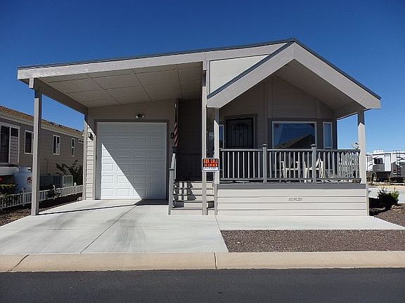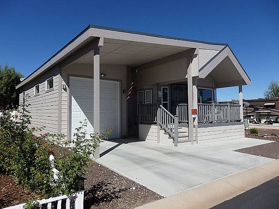 JUNIPER RIDGE RESORT - Beautiful 2011 Park Model with 450sf addition (850sf total), plus a large one car garage with 10' door, 2 remotes and keypad. Home has 2 bedrooms (one 13'x18') and 2 full baths. Juniper Ridge Resort is a 55 adult community just outside ShowLow, Arizona where you OWN YOUR LOT. But homeowners can be 45 to buy or live here. Other home features include: 2 hot water tanks (30 & 40 gal); vaulted ceilings throughout (4 ceiling fans); metal roof; front and back trex porches w/rear door exit; wood plank flooring and tile in addition; washer/dryer hookups only; loads of closet space (5'x8' walk-in off master bath w/floor to ceiling shoe rack, plus 8' long mirrored slider closet with storage below); stainless appliances in Kitchen w/doublewide fridge, full-size dishwasher, stainless sink, large pantry and kitchen skylite); solid hickory kitchen cabinets & pantry doors; security door on front and fire door into garage; extra insulation for year round living; gated community; concrete slab under entire home; only full-size garage in resort. Home is partially furnished with an L-shaped Lazyboy couch with end recliners, a dinette w/chairs, and a queen mattress which would stay if the new owner wanted them. The stainless appliances (fridge, stove, microwave and dishwasher) would of course stay. Update August 2020 - Just added beautiful tile backsplash in kitchen. QUESTION - Why has it taken so long to sell your house. ANSWER - I tested the market in 2018 for 4 months. Then listed it on Zillow again in August 2019 but was only at Juniper Ridge until October (2 months) which wasn't enough time to show and sell it. Even though it was on Zillow for the next 10 months, I was not at my home to show and sell it. It wasn't until early August of this year that I returned to Juniper Ridge, and I am once again pursuing the sale of my home.