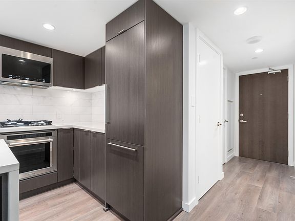 Welcome to Northwest by Onni - this spacious 565ssqft one bedroom unit features a functional, open layout with an oversized balcony. This home shows like new & includes high efficiency heat pump/central air conditioning, high quality stainless steel appliances, quartz countertop and laminate flooring throughout. The building has unbeatable amenities including a fully equipped fitness centre, lounge with BBQ, garden plot, games, & media room with full kitchen & guest suites. Comes with one locker and credit for a 2 year lease on a parking stall. Located directly across from the skytrain station, banks, restaurants, T&T and Cineplex and short drive to the Airport, Richmond, UBC & Downtown. School catchment - Sir Wilfrid Laurier Elementary and Sir Winston Churchill Secondary (w/IB program).