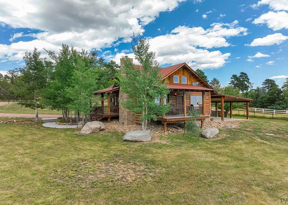 Welcome to your mountain sanctuary at 8238 Old San Isabel Rd in Rye, CO. Nestled on 3.36 acres, this unique and quaint cabin offers a serene escape with breathtaking views of Greenhorn Mountain. Step inside to discover vaulted ceilings adorned with wood beams, highlighting the rustic charm of this home. The living room boasts a stunning mountain rock fireplace, perfect for cozy evenings. The main floor features a gourmet kitchen equipped with concrete countertops, a 36" 6 burner Wolf Range Oven, custom cabinetry, a large butcher pantry, and an eat-in counter space. Barnwood flooring adds warmth and character throughout. The primary suite boasts a beautiful ensuite bath and a spacious walk-in closet, ensuring comfort and privacy. A flex space in the basement provides flexibility for additional sleeping arrangements, complete with its own ensuite bathroom and laundry room. Outdoor enthusiasts will appreciate the 42 x 64 shop with an 18-foot overhang, fully insulated and including 50 amp RV hookups. A heated and insulated detached 2-car garage and an attached 2-car carport offer ample space for vehicles and storage. The property is fully fenced with rod iron fencing, providing security and a sense of exclusivity in this picturesque mountain town. Don't miss your chance to own this mountain retreat offering both luxury and functionality. Schedule your private tour today and experience the tranquility of 8238 Old San Isabel Rd.