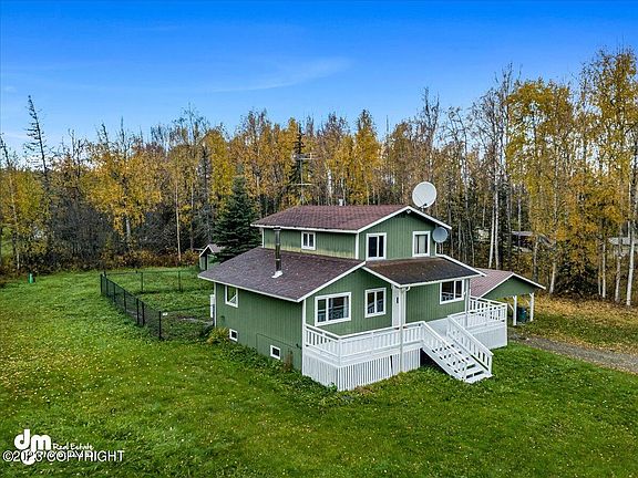 Welcome to your spacious Alaskan retreat! This stunning multi-level home sits on a sprawling 1.09-acre lot outside of the city of Wasilla. With three bedrooms and 2 1/2 baths, this property offers ample space and comfort for your family.As you step inside, you'll be greeted by the warm and inviting living spaces, perfect for gatherings and relaxation. The living room is equipped with a woodburning stove to help combat those cold Alaskan evenings. The primary bedroom suite is separated from the rest of the house, boasting a private bath and ample closet space. Two additional bedrooms provide versatility for guests or a growing family. Step outside onto the expansive deck, where you can soak in the breathtaking Alaskan scenery. The generous 1.09-acre lot offers endless possibilities, whether you dream of gardening, outdoor recreation, or simply enjoying the serene surroundings. Located in a quiet neighborhood, you'll have the best of both worlds - tranquility and convenience. Downtown Wasilla, schools, and essential amenities are just a short drive away. Don't miss the opportunity to make this remarkable multi-level house your forever home. Schedule a showing today and experience the Alaskan lifestyle at its finest.