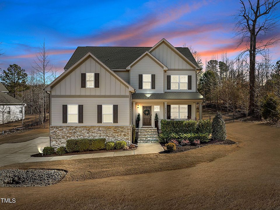Bring your telescope to 8238 Southmoor Hill Tr in Wake Forest, NC to look for shooting stars at night and see this charming home during the day in a quiet & safe community, adorned with abundant trees and teaming with wildlife such as deer, rabbits and much more. As you approach the house, you are greeted by a well-manicured lawn, rocking chair front porch and a picturesque exterior that exudes warmth and curb appeal. The home itself boasts a spacious and inviting interior, featuring an open floor plan with hardwoods on most of the main level that seamlessly connects the family room w/ gas fireplace, dining room, and kitchen. Numerous windows allow an abundance of natural light to illuminate the space, creating an airy and welcoming atmosphere. The kitchen is equipped with modern stainless appliances such as a gas range, ample granite counter space, tile backsplash and crafted wood cabinetry, making it a perfect setting for both everyday cooking and entertaining guests. Moving through the home, you'll find well-appointed bedrooms featuring a HUGE Master w/ sitting room/office and a massive walk-in closet that offer comfort and privacy, along with bathrooms that boast contemporary fixtures and finishes. Additionally, the property includes a screened back porch, perfect for enjoying the beautiful North Carolina weather, and a side load two-car garage for added convenience. The surrounding area offers a wealth of amenities that cater to residents' diverse needs and interests. Wake Forest is known for its charming downtown area, which features a variety of local shops, restaurants, and entertainment options. Residents can enjoy leisurely strolls through the historic streets, dine at eclectic eateries, or attend community events and festivals that showcase the town's rich culture and heritage. For nature enthusiasts, the proximity to Falls Lake presents an exceptional opportunity to explore the great outdoors. With its expansive reservoir and surrounding parkland, Falls Lake offers a picturesque setting for activities such as boating, fishing, hiking, and picnicking. Residents can immerse themselves in the natural beauty of the area while creating lasting memories. Furthermore, the town of Wake Forest is known for its strong sense of community and commitment to education, with access to reputable schools and educational institutions. In summary, 8238 Southmoor Hill Tr offers a wonderful blend of comfortable living, convenient amenities, and access to the natural beauty of Falls Lake. Whether you're seeking a peaceful retreat or a vibrant community to call home, this property provides an inviting and well-rounded lifestyle for all!