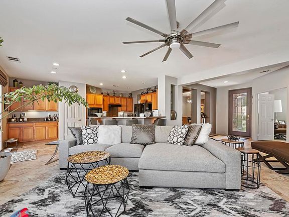 Chic and Stylish! LUSH LANDSCAPE, Stone facia at the entry and Beveled Glass Door awaits you as you enter this lovely home.Do you have a big family? Are the kids working from home/or being home schooled? You need extra room for the parents, need a work out area or office, or are you just simply empty nesters? This home offers so much and checks all the boxes. Beds and a Den. RV Parking.A private wing with seperate bath and privacy.This home features a spool/spa combo with cascading waterfall, firepit brings the inside to the outside for family gatherings and entertainment. Plantation shutters, blackout bamboo blinds, epoxy floor in garage, celing fans, nest doorbel. A light desert pallet on the walls. Stacked Stone wall in hallway. Formal Dining room creating an elegant vibe where one will enjoy amazing meals and holiday memories. This is a family community, safe, pride of ownership and gated. Wonderful walking area and pet friendly. Close to Entertainment, shopping and easy freeway access. Make this home yours, you will be glad you did!''SELLER VERY MOTIVATED!