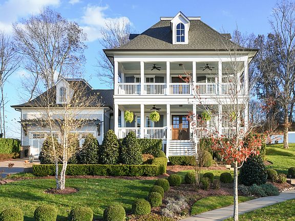 This luxury home evokes classic Southern charm combined w/ a traditional sophistication. Fabulous sun drenched open concept floor plan features designer touches and hardwood throughout. Memories will surely be made in this inviting great room w/ cozy fireplace. Main level Primary ensuite & 2nd ensuite on opposite side. Additional amenities include coffee bar, study/office & craft rm. Upstairs 3 more ensuites, including a fun bunk room spacious bonus room. Experience living in the South enjoy the spectacular views from the main and second level porches on both the front and the back of your new home. Perched above the neighbors, this location boasts a very private backyard with a wood burning fireplace w/ room to add your dream pool!