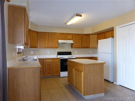 4 BEDROOM HOME CLOSE TO FORT CARSON! All 4 bedrooms and the laundry are on the upper level and front bedrooms have great views of the mountains. Well designed main level maximizes the space with a wrap-around kitchen that includes an island that borders a spacious dining area. Fenced in back yard. Kitchen and dining area has ceramic tile flooring. 560 sq ft unfinished basement for lots of storage. Neighborhood has excellent access to shopping, dining, Fort Carson and the I-25 and Powers corridors. Front porch looks west towards the mountains so you can watch the sunset over the Rockies. Pets allowed with property manager approval and additional pet deposit. 4 bedrooms / 2.5 bathrooms approx. 1,550 sqft