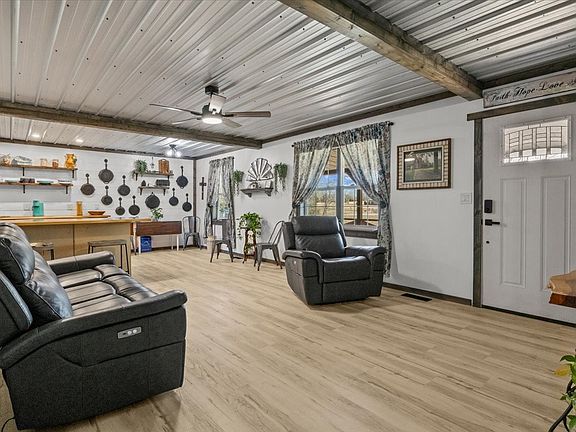 1 Hour from Nashville 5 miles from interstate 40.... 5.01 Acres With a renovated 3-bedroom 2 bath home features a covered patio with an outdoor wood burning fireplace, Live edge walnut countertops, this home has all the special touches.