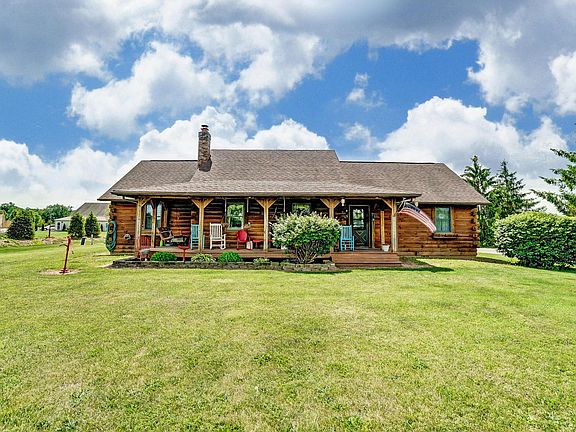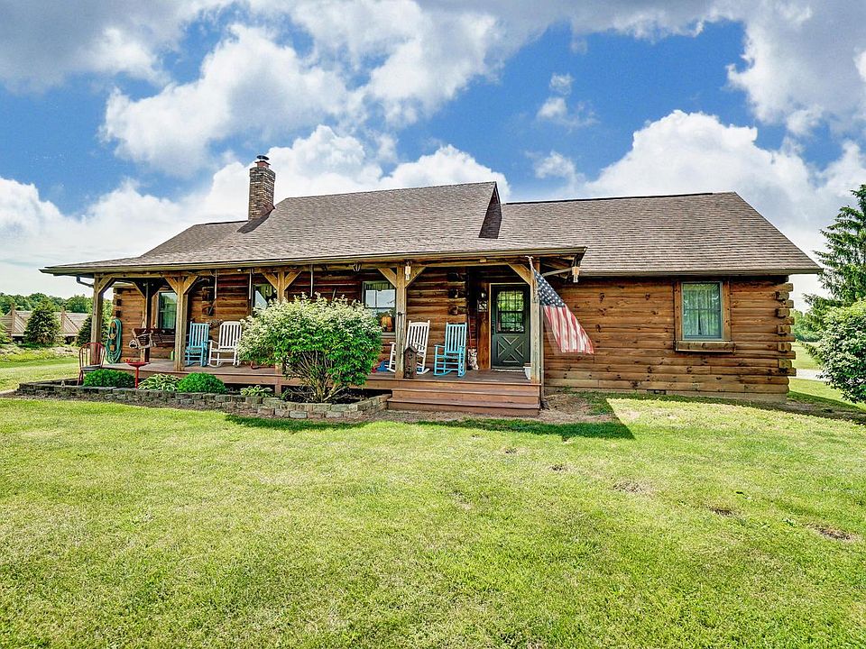 Beautiful Timber Framed Log Cabin home on almost 3 acres. 3 bedrooms and 2 Full Baths with 1st floor laundry. Loft overlooks the family room with wood burning stove. Large front and rear decks are perfect for entertaining guests. The oversized heated garage it ready for any hobbies.