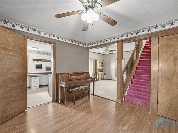 Spacious and versatile, this 5-bedroom, 3-bath home on 1.35 acres offers room for every lifestyle. The main level features ground-floor laundry, an oversized living room, a family room, and a dedicated office. Upstairs, enjoy a cozy nook for reading or showcasing your favorite pieces, plus a bonus living space that can serve as a 6th pass-through bedroom. Outdoor living shines with a 27' pool, fenced backyard, and a 24x32 finished pole barn ideal for hobbies or storage. Just 20 miles from Findlay and 9 from Tiffin, this home blends peaceful country living with convenient access to town.